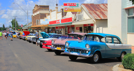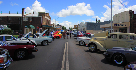 Last year we had in excess of 170 cars angled parked the length of the shopping centre. Top 10 car trophies, scores of lucky entrant prizes and a really great spectical. possibly the biggest car show for a small country town. Not only can you enjoy the cars in Bradley street but you can also walk thru to the Festival grounds and enjoy all the delights of the festival, the Antique Machinery Rally, the train rides to the old railway station. The model trains over at the church hall and even more. BBQ and entertainment to follow at the show ground where we have the Classic caravan Muster.